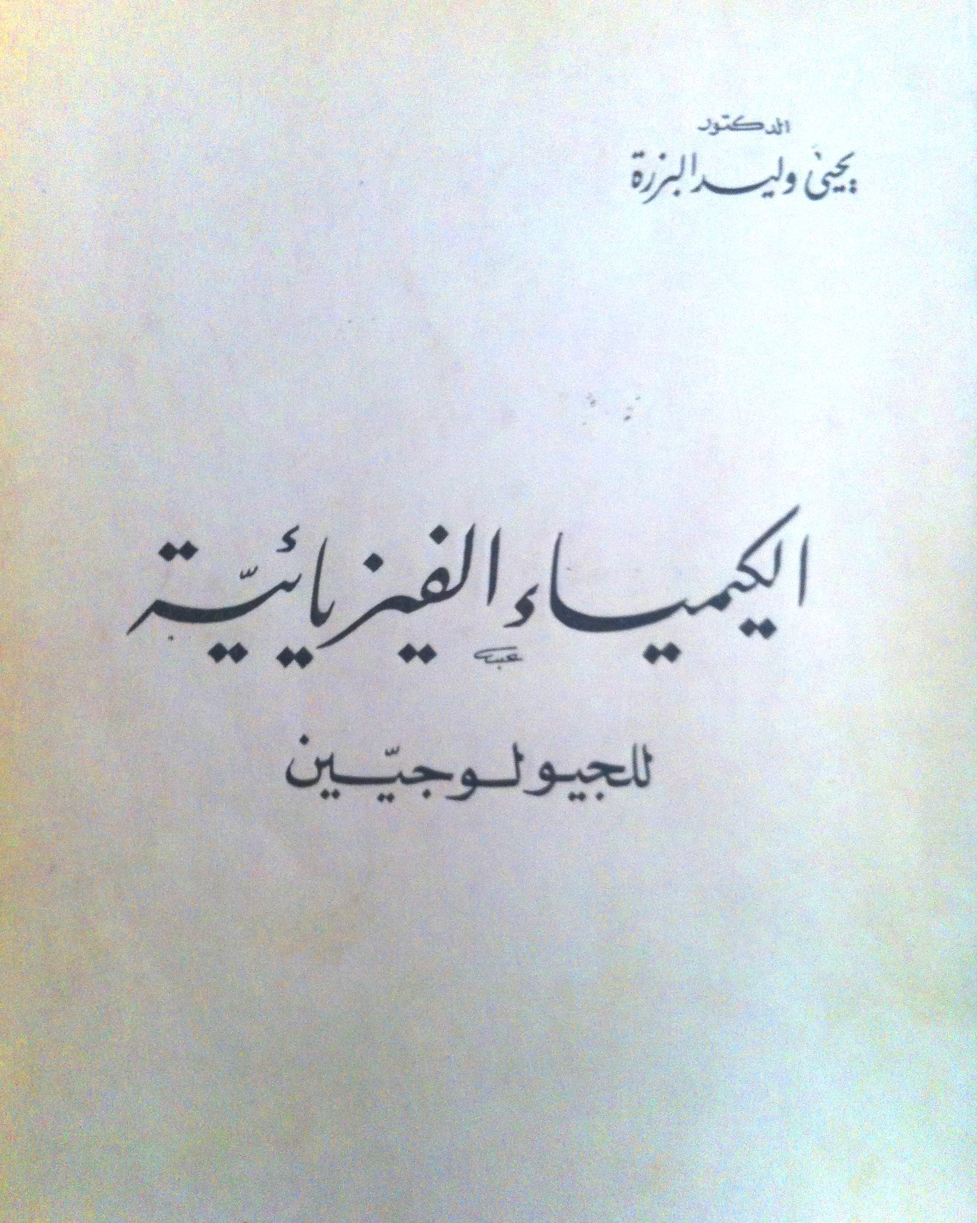 General and Applied Chemistry, Introduction to Chemistry, First Edition, Bizreh, Y. W., 1971 - Book8:Physical Chemistry; Alberty, Selby(1996) “Participation in Translation” Arab League Center for publications (1998)